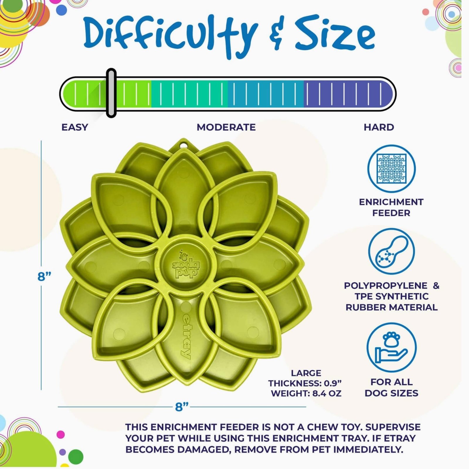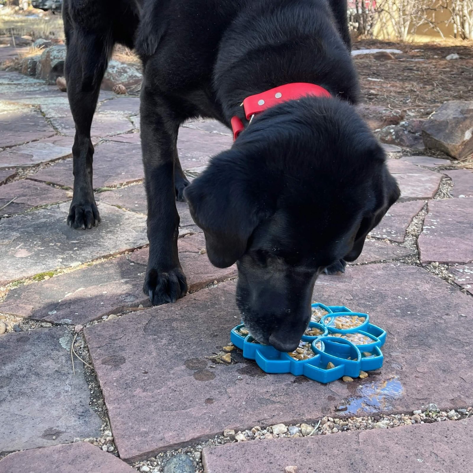 Le Mandala est parfait pour servir des aliments secs et humides ensemble sans faire de dégâts. Vous pouvez combiner des aliments ensemble ou les séparer dans les chambres individuelles de la conception. La profondeur du Mandala est idéale pour servir des plats crus (consulter un vétérinaire). Le Mandala peut être utilisé pour les collations ou les repas. Le design Mandala présente différentes hauteurs et profondeurs imitant des conditions alimentaires plus naturelles et mettant à l’épreuve l’instinct naturel de nourriture de votre chien. Idéal pour les chiens à nez plat comme les races intimidatrices qui peuvent avoir du mal à manger des gamelles plus profondes et plus lentes. Le design Mandala