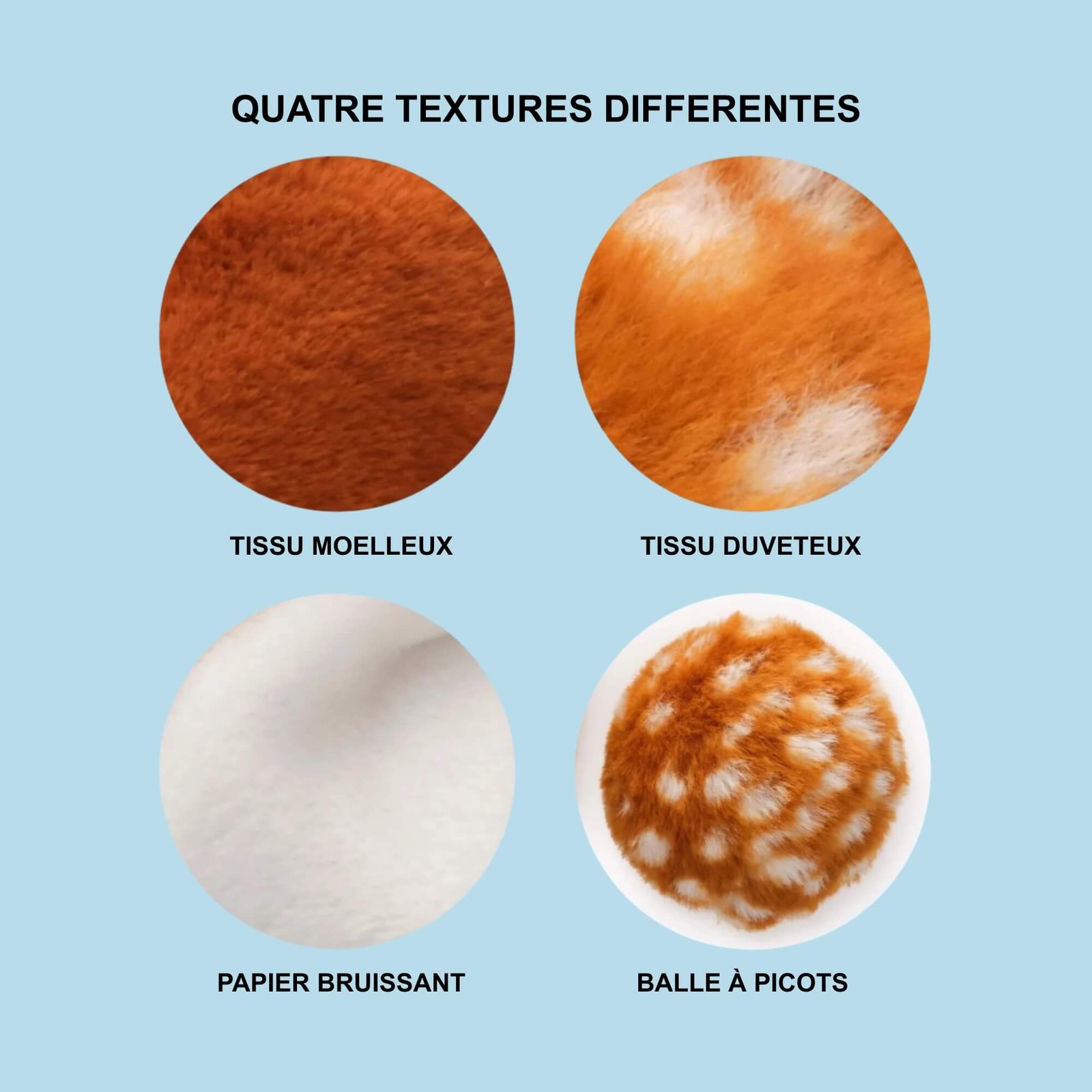 4 textures différentes : pour éveiller le toucher et prolonger l’intérêt