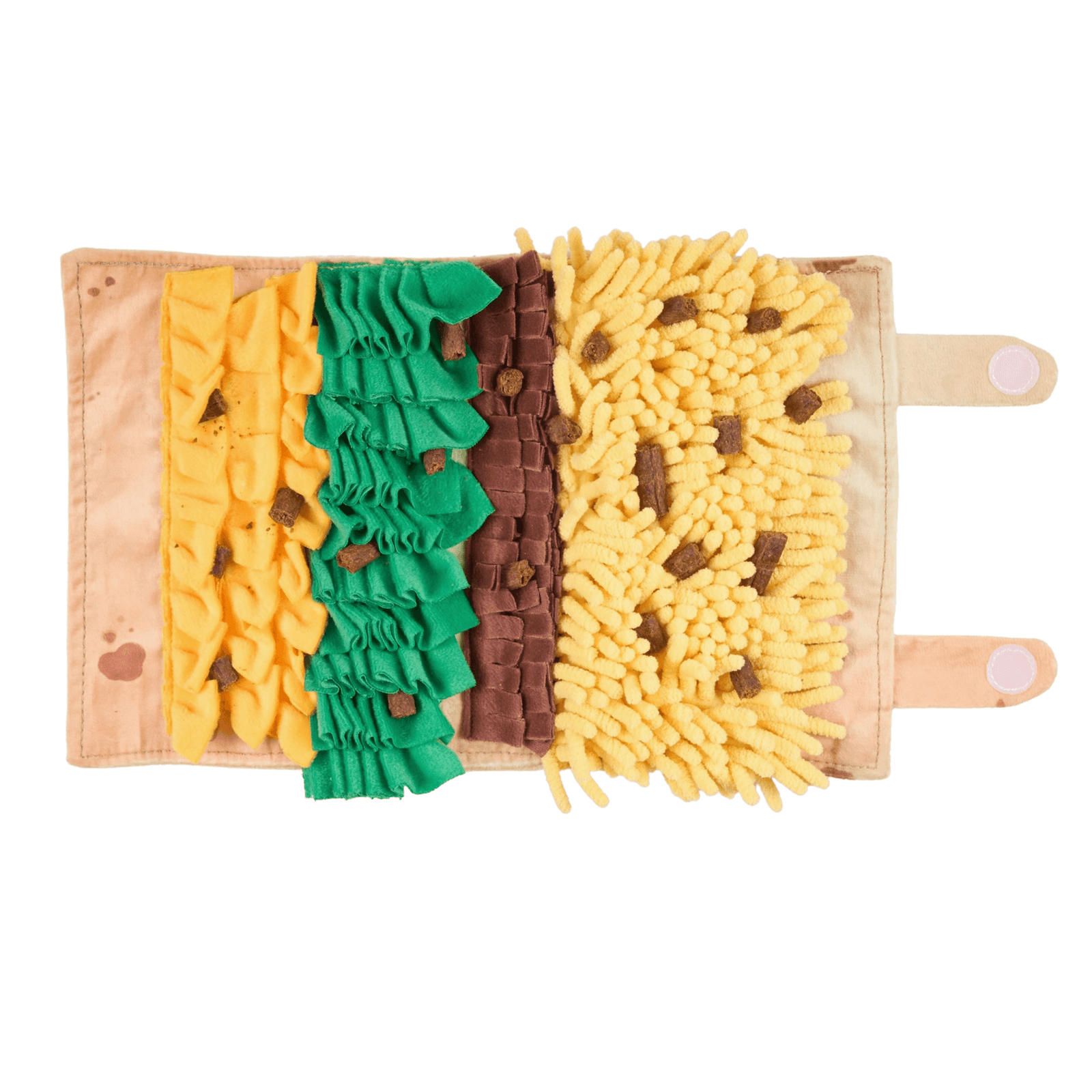 2. Cachez les friandises : Insérez des friandises ou des croquettes dans les différentes couches du tapis, en variant les emplacements pour augmenter la difficulté.