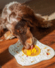 – Étalez une fine couche de nourriture humide (pâtée, fromage frais, purée adaptée) sur les reliefs